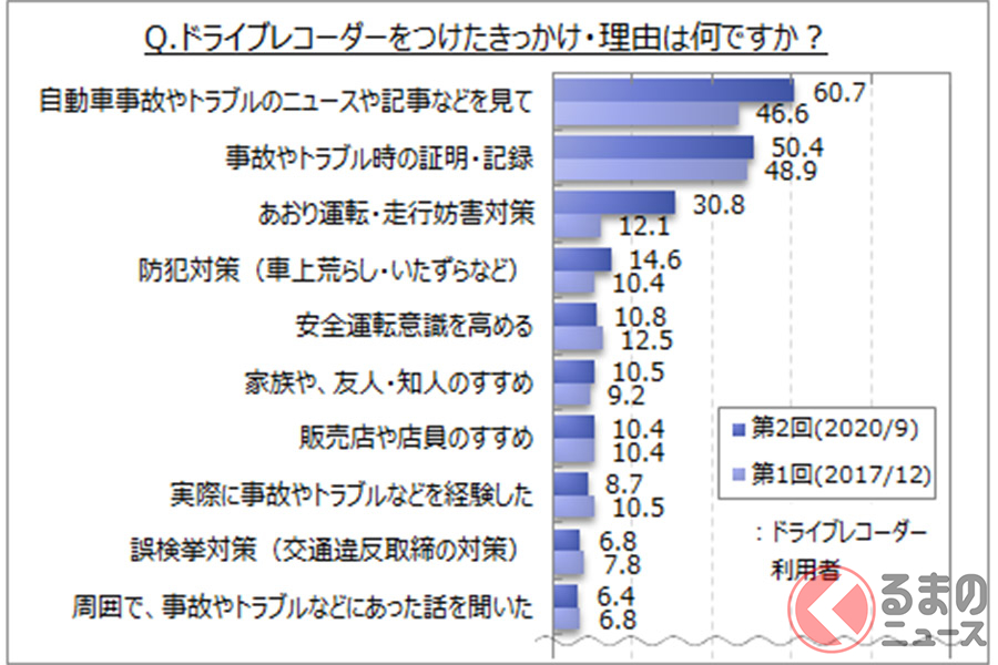 ドライブレコーダーの普及率は4割強 装着理由の大半は トラブルの防止 くるまのニュース 自動車情報サイト 新車 中古車 Carview