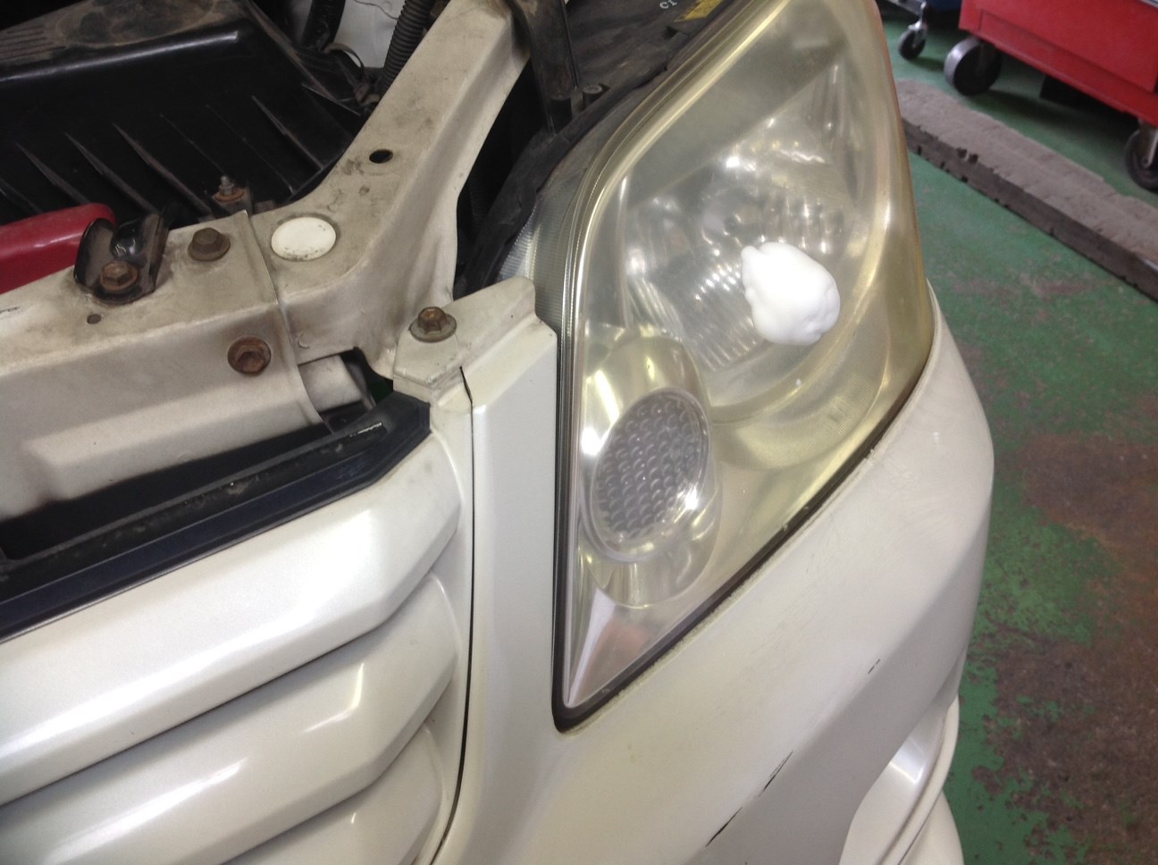 ノア zrr70 ヘッドライト くすみ 黄ばみ 日焼け クリア作業 グーネットピット