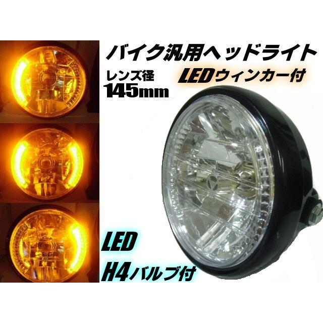 Amazon 在庫処分 バイク用 汎用ヘッドライト Ledサブウィンカー内蔵 マルチリフレクター搭載 レンズ径145mm Led H4バルブ付 社外品 ヤマハ スズキ ホンダ カワサキ ハーレーダビッドソン ヘッドライト 車 バイク